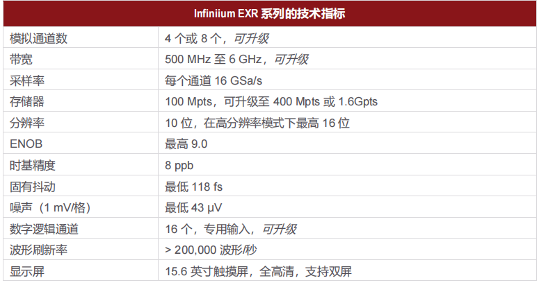 EXR系列示波器功能强大、经济适用、操作直观 采用 ASIC 技术,加快测试速度 有效位数(ENOB)高达 9.0,噪声低至 43 µV,确保测量结果准确可靠 最大存储器深度达到灵活的 1.6 G 点 将 7 种仪器的功能集于一身,大大扩展了示波器的功能 > 200,000 波形/秒的快速波形捕获率和独有的 Fault Hunter 技术,助力您尽快找出物理层问题 高达 16 位的分辨率和低至 43 µV 的典型噪声使您能够调试非常敏感的信号 专用探头、附件以及包含逐步设置向导的自动化应用软件,显著简化电源和配电测试操作 数十种自动测量、触发、解码和一致性测试应用软件协助您对协议层的串行总线进行故障诊断